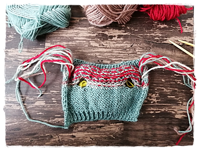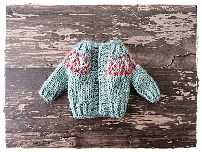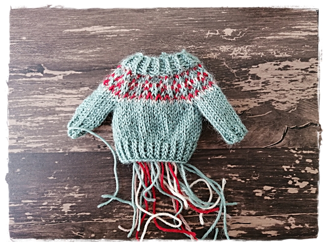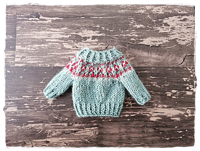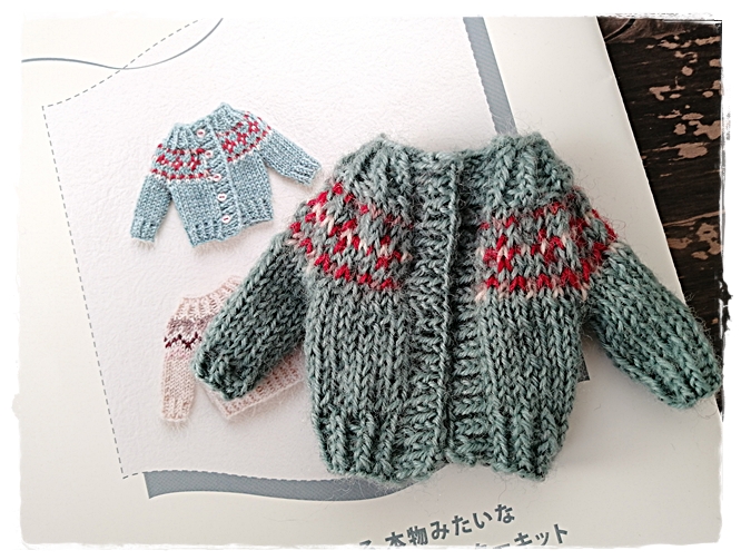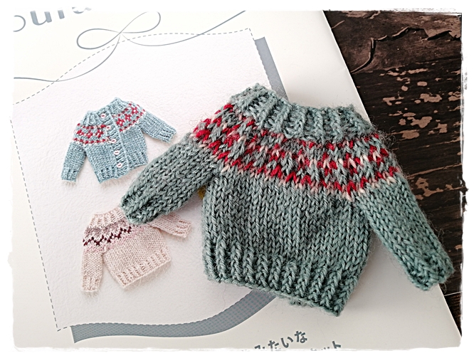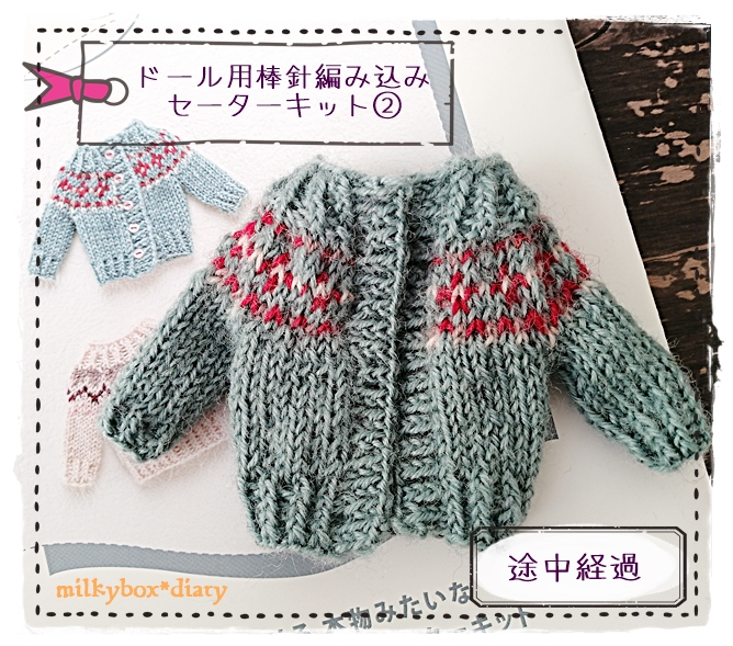 【フェリシモのキット】ドール用棒針編み込みセーターキット途中経過②2着目♪